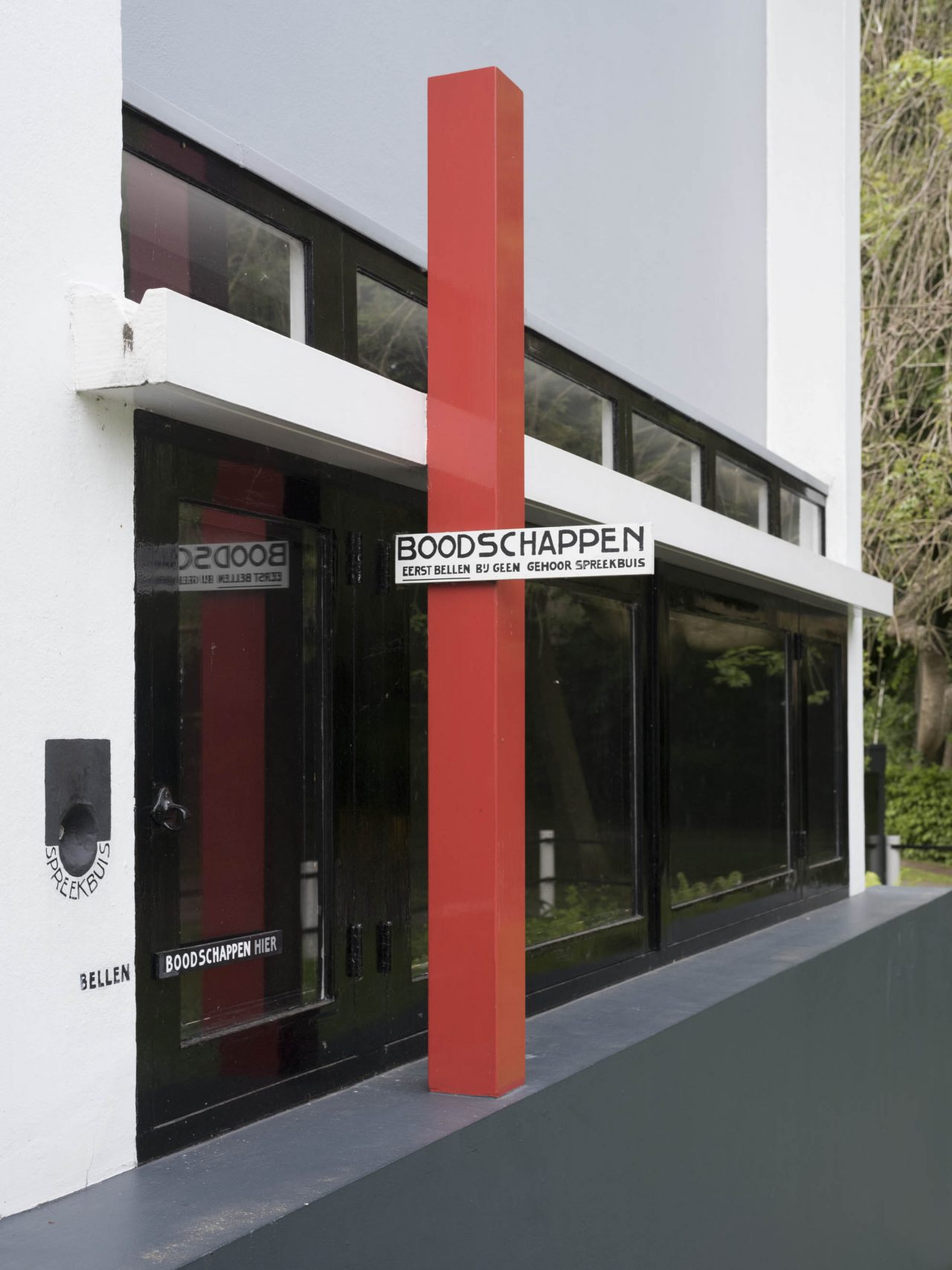 Regelmatig ontwierp Rietveld een boodschappenraam in de keukengevel zodat de bakker en de melkboer bestellingen direct in de keuken konden plaatsen. Deze ramen liet hij helder rood schilderen zodat ze goed opvielen. Boodschappenramen zijn overal in Rietvelds huizen te vinden, van het Rietveld Schröderhuis in 1924 tot huis Kronenberg in 1963. Sommige van zijn huizen hebben een boodschappenraam zonder opvallende kleur, zoals zomerhuis Brandt Corstius (Petten, 1939) en huis Székely (Bloemendaal, 1934). Het boodschappenraam van het Rietveld Schröderhuis was ook gewoon zwart, maar had een aparte roodgekleurde wegwijzer met de tekst ‘boodschappen’ die duidelijk aangaf waar de melkboer zijn waren kon achterlaten. Andere huizen zoals huis Slegers (Velp, 1955) hebben wel een rood geschilderd keukenraam terwijl de keuken niet aan de wegzijde ligt en het raam daardoor een beperkte functie heeft.