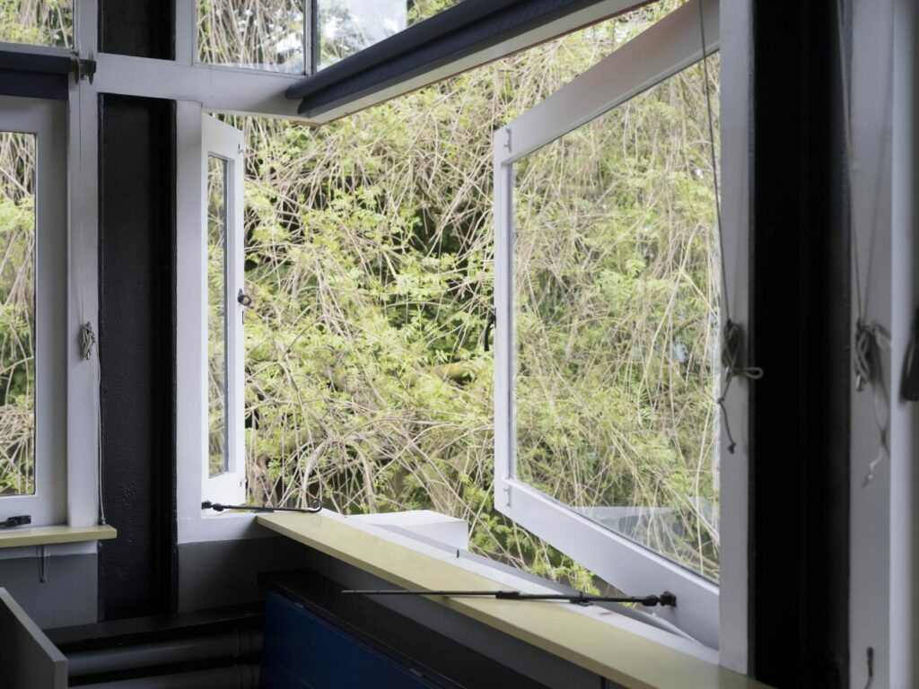 Als we de manier waarop Rietveld zijn ramen ontwierp nader bekijken, zien we een grote variatie in zijn woonhuizenoeuvre van 1924 tot 1964. Een verder onderscheid kan worden gemaakt in de materialen die hij gebruikte. In zijn vroege huizen in de jaren ‘20 gebruikte hij houten kozijnen. In de jaren ‘30 en ‘40 gebruikte hij vooral stalen kozijnen voor zijn vrijstaande villa’s, volgens de modernistische mode van Bauhaus in Duitsland en het Nieuwe Bouwen in Nederland. Vanaf de jaren ‘50, toen hij begon met het bouwen van gelijkvloerse bungalows met grote overstekende daken, gebruikte Rietveld een mix van houten en stalen kozijnen, zowel voor de ramen als voor de deuren.