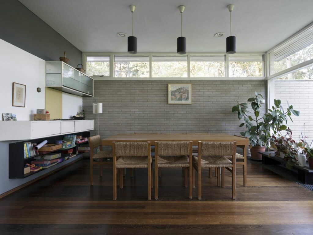 Vanaf de jaren ‘50 ontwierp Rietveld voornamelijk bungalows, bestaande uit verschillende delen met soms een aparte slaapvleugel. In veel van deze huizen met één verdieping ontwierp hij een dak met meerdere niveaus zodat een horizontale strip met dakramen ontstond. Deze hoog geplaatste ramen brachten niet alleen extra licht in het interieur maar versterkten ook het ruimtelijke gevoel. En als bonus zag de buitenkant er veel aantrekkelijker uit. Dit type dakontwerp is prominent aanwezig bij huis Van Daalen in Bergeijk (1960).