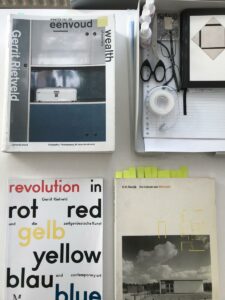 Het Rietveld Schröderhuis heb ik in het verleden vaker bezocht, maar nu kreeg ik de kans om buiten de reguliere openingstijden een unieke privé rondleiding te krijgen van Natalie Dubois, conservator toegepaste kunst en vormgeving van het Centraal Museum Utrecht. Een betere voorbereiding op de ‘artist in residence’ had ik mij niet kunnen wensen!