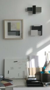 Doel van de ‘artist in residence’ periode bij PE5 ‘Post Erasmuslaan 5’ was om mij als beeldend kunstenaar te laten inspireren door de architectuur, vormentaal en het gedachtegoed van architect Gerrit Rietveld. Ik was heel benieuwd wat dit voor mijn beeldend werk zou kunnen betekenen.