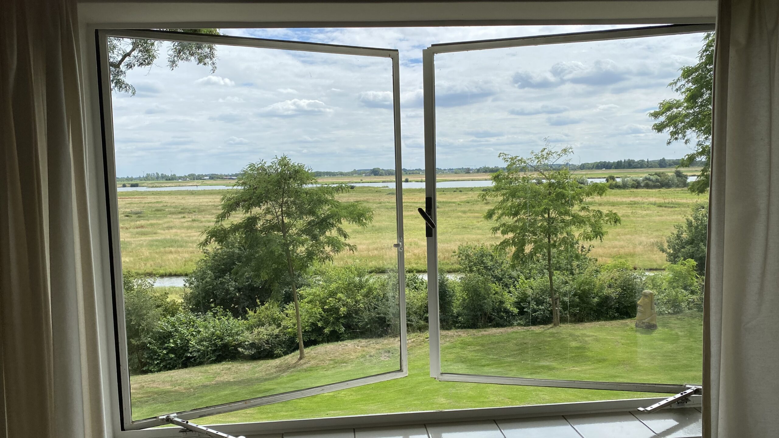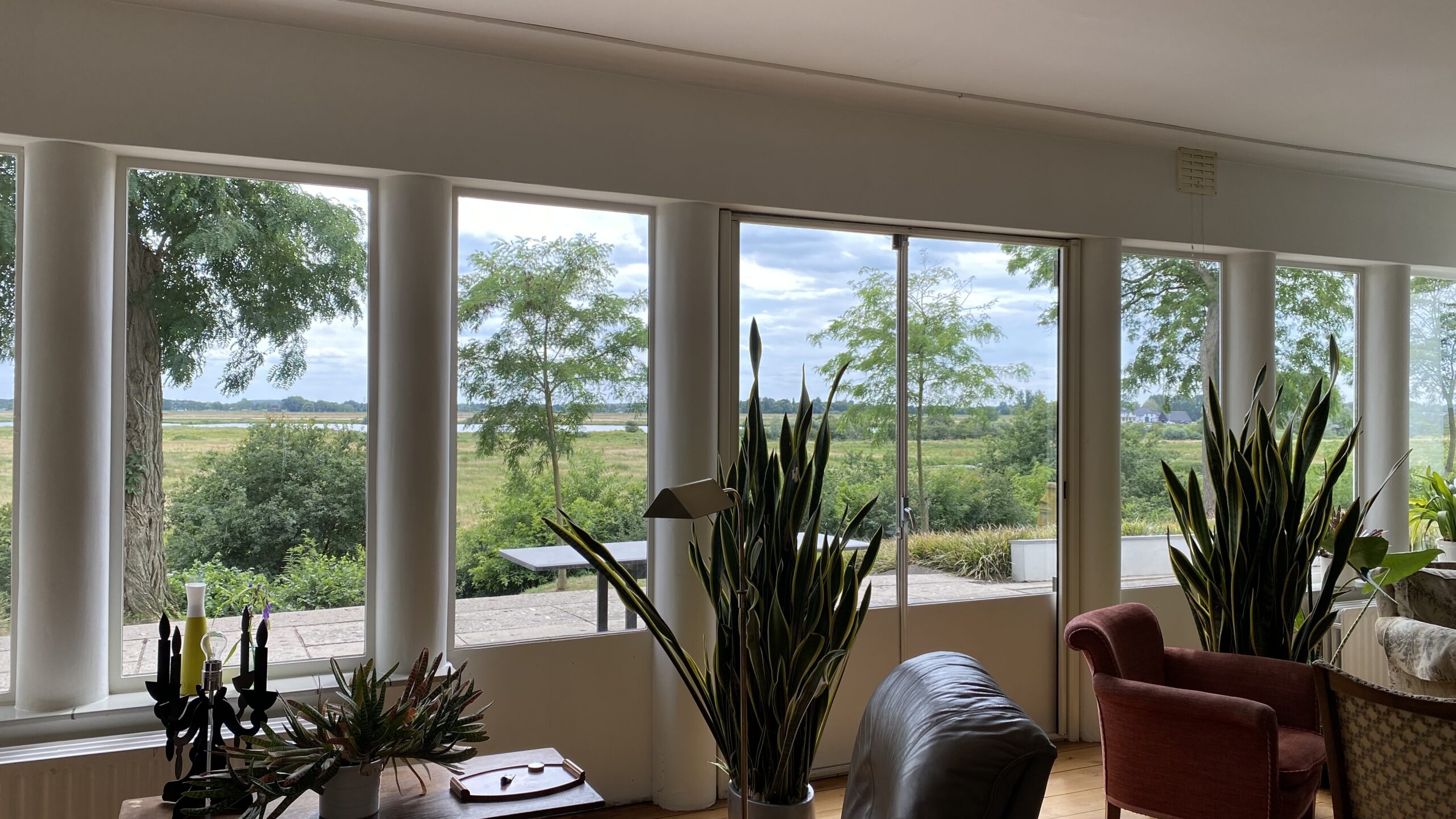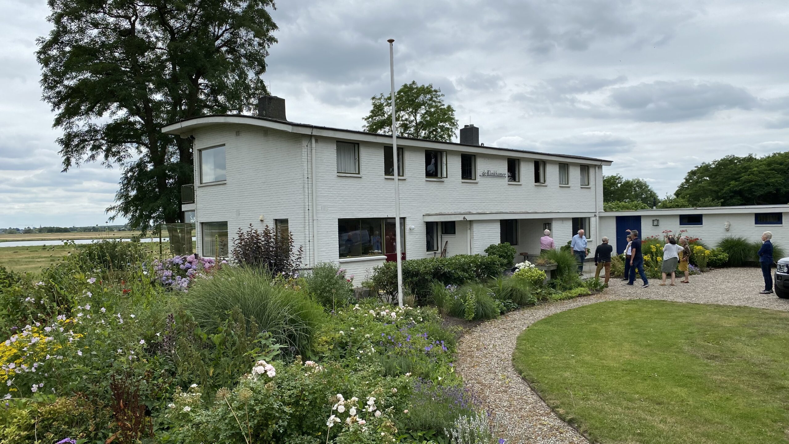 Koffie op het terras, taart van pruimen uit eigen tuin, een adembenemend uitzicht over de uiterwaarden van de Nederrijn en een zon die veelbelovend vanuit de coulissen om het hoekje kijkt. Een betere ontvangst kan men zich niet wensen. We zijn op bezoek bij Raymond en Nicole in De Klinkhamer, ofwel huis van Ommeren in Elst.