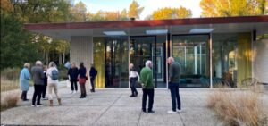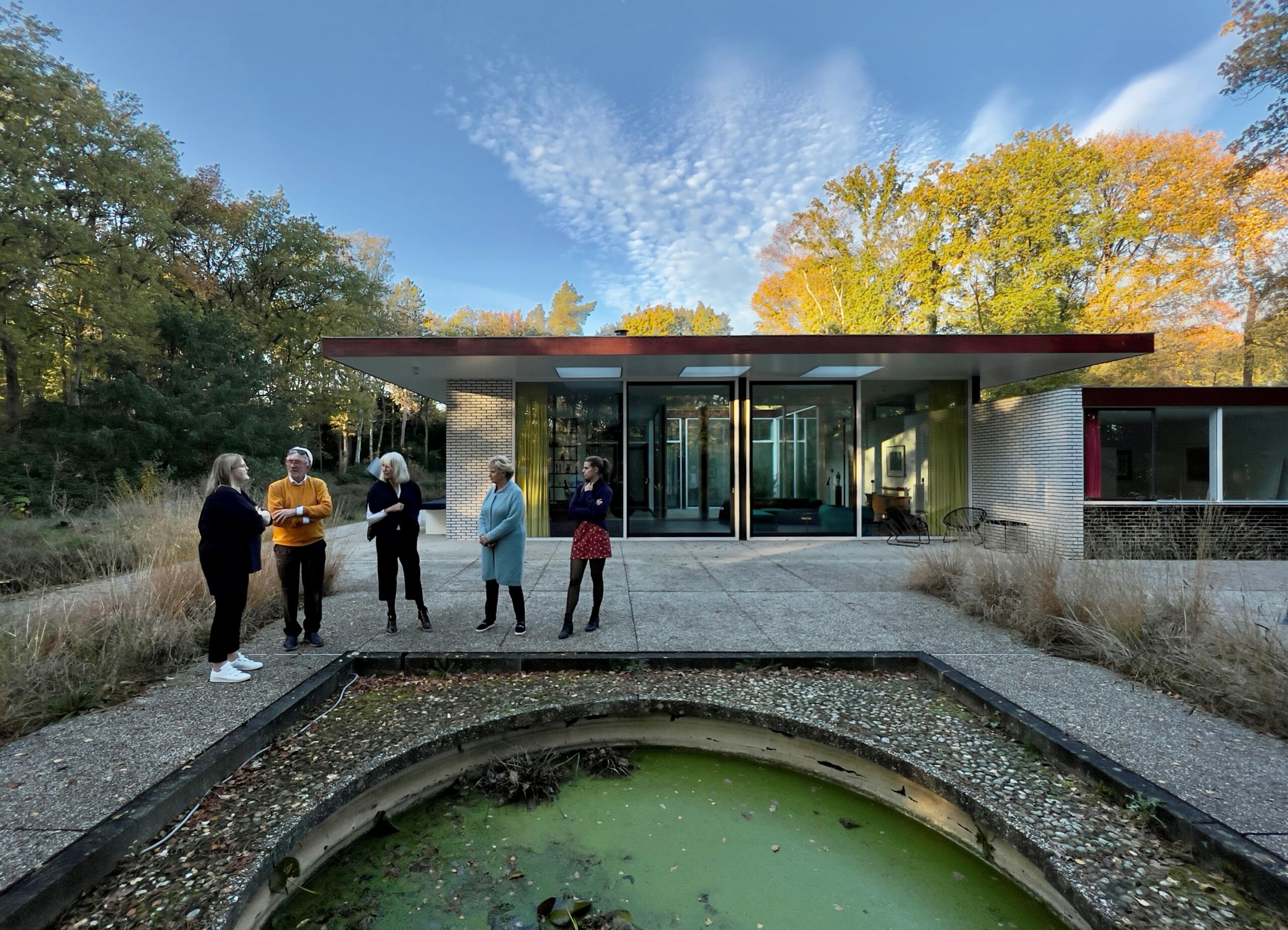 Op de aanmeldingsmail voor een bezoek aan huis Bosschaert in Laren (Noord-Holland) hadden meer dan twintig leden van de vereniging gereageerd. Vanwege de grote belangstelling werd besloten om de bezoekers in twee sessies (10.30 uur en 14.00 uur) te ontvangen. Ik bezocht het huis tijdens de eerste sessie samen met 12 gasten: meerdere Rietveldhuiseigenaren, belangstellende leden en namens het bestuur Adrien van der Kloes, secretaris.