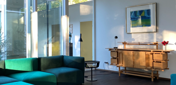 De Rietveldwoning van Martin en Annette is een zeer fraaie woonvilla met hoge ruimtes en meerdere gevelhoge schuiframen, waardoor er veel licht de woning binnenvalt. Ook zijn er mooie doorkijkjes naar de open patio en de verschillende aaneengeschakelde ruimtes.  En er is visueel contact met de buitenomgeving.  Alle ruimtes zijn met smaak en met oog voor detail ingericht. Van wastafelkraan tot geometrisch abstracte kunst aan de muren…het is met zorg door de bewoners uitgekozen!