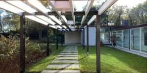 Op de aanmeldingsmail voor een bezoek aan huis Bosschaert in Laren (Noord-Holland) hadden meer dan twintig leden van de vereniging gereageerd. Vanwege de grote belangstelling werd besloten om de bezoekers in twee sessies (10.30 uur en 14.00 uur) te ontvangen. Ik bezocht het huis tijdens de eerste sessie samen met 12 gasten: meerdere Rietveldhuiseigenaren, belangstellende leden en namens het bestuur Adrien van der Kloes, secretaris.