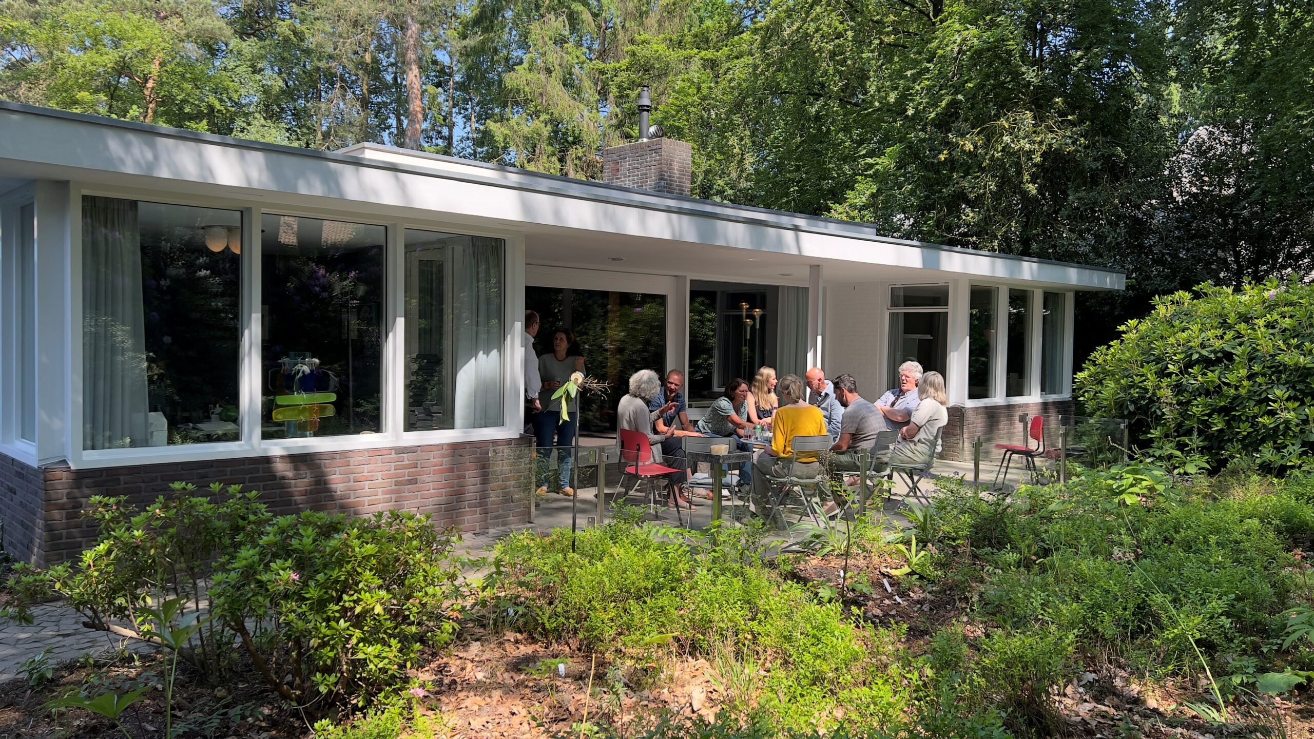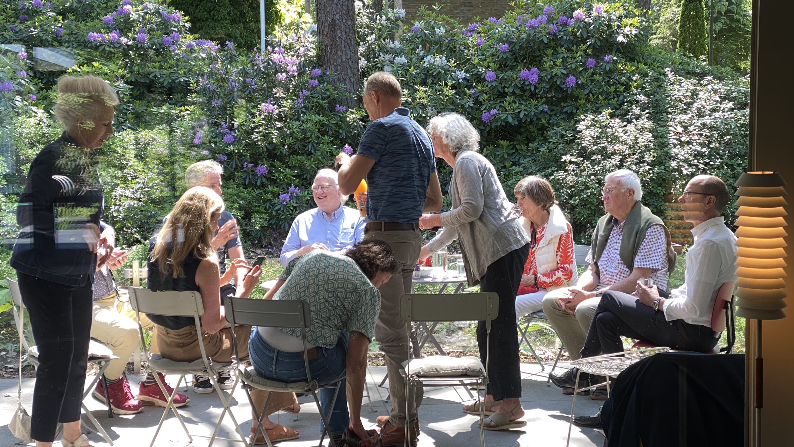 De zon werkt op 4 juni goed mee tijdens de bezichtiging van huis Cordemeyer te Apeldoorn. Bij de hartelijke ontvangst door de bewoners Erik en Petra, zien we bekende én nieuwe gezichten.